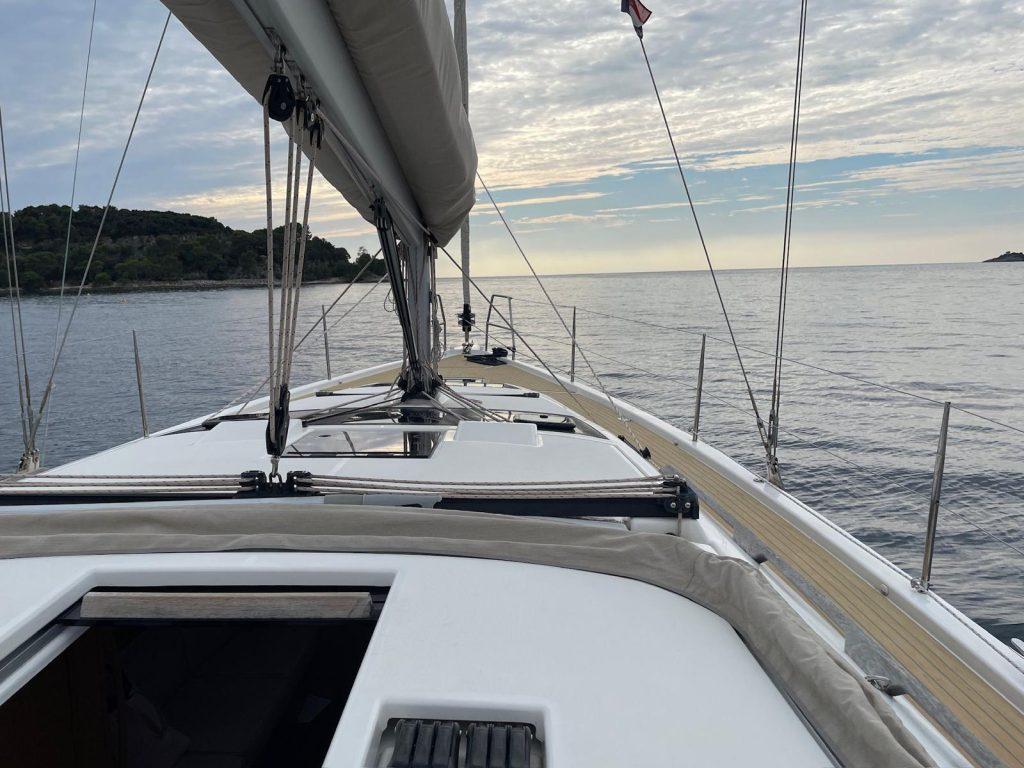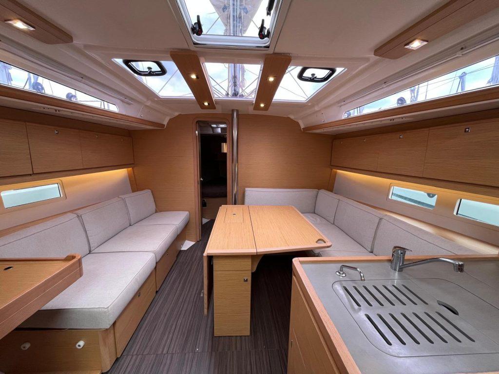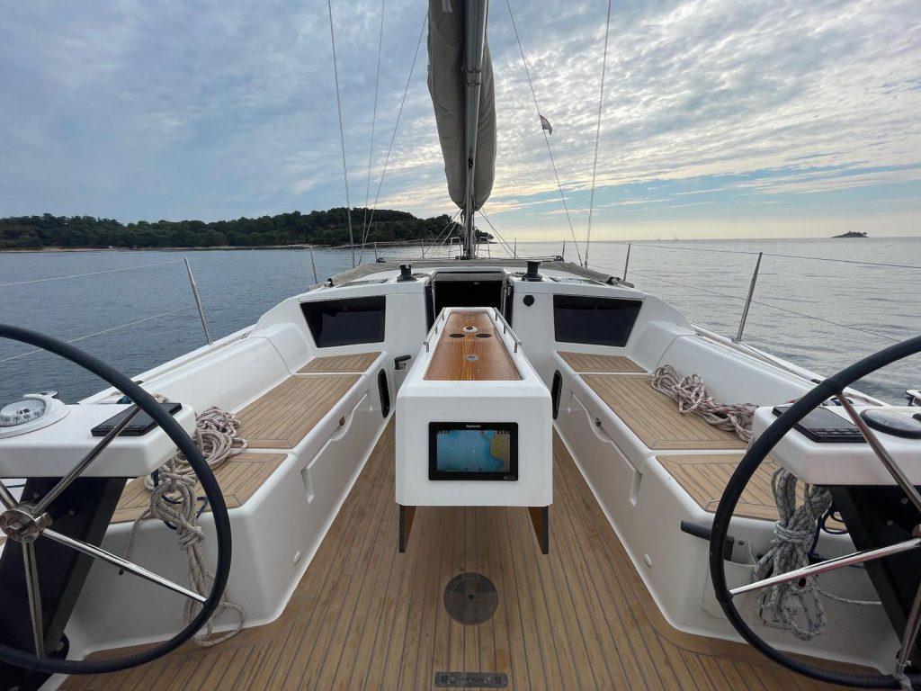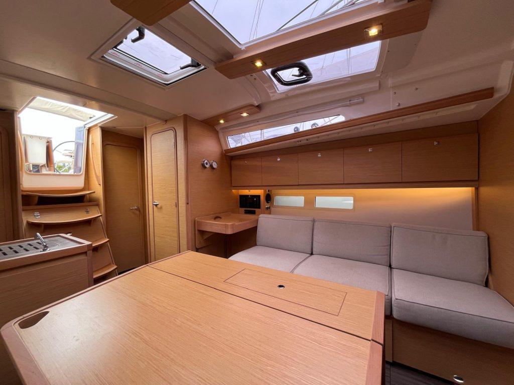 Ponte in teak sintetico, doccia pozzetto calda e fredda, randa steccata su carrelli, rotaia fiocco autovirante, genoa 108 %, sistema scotta randa alla tedesca, 4 winch di cui uno elettrico, Code 0 su delfiniera, spray hood, bimini, barbecue con lavandinoo in pozzetto.