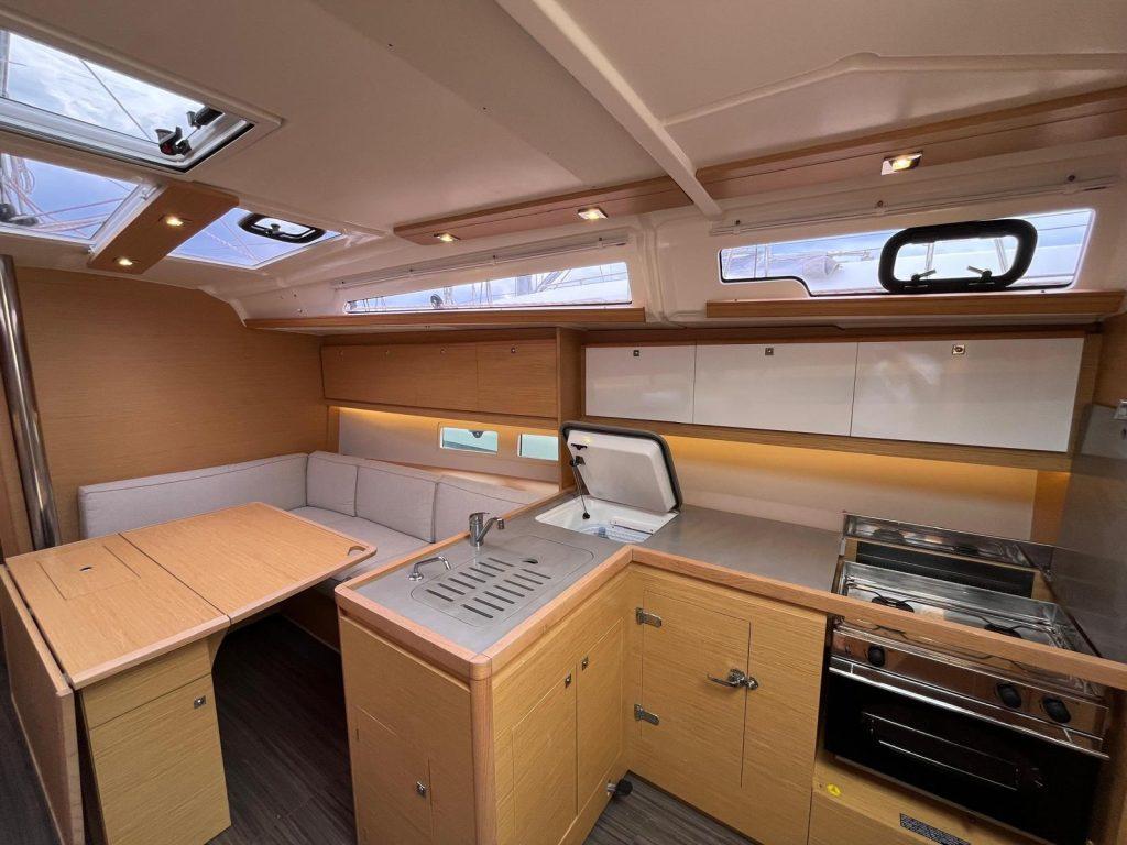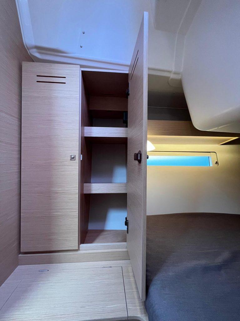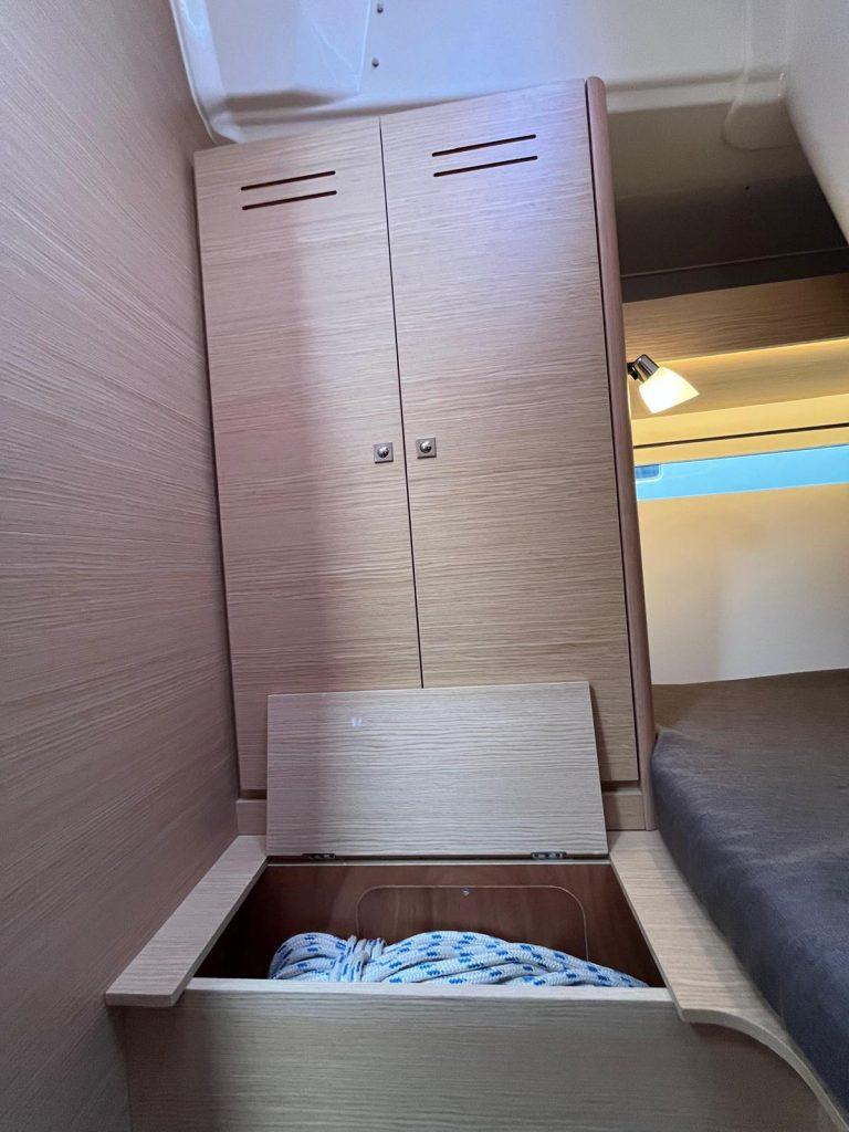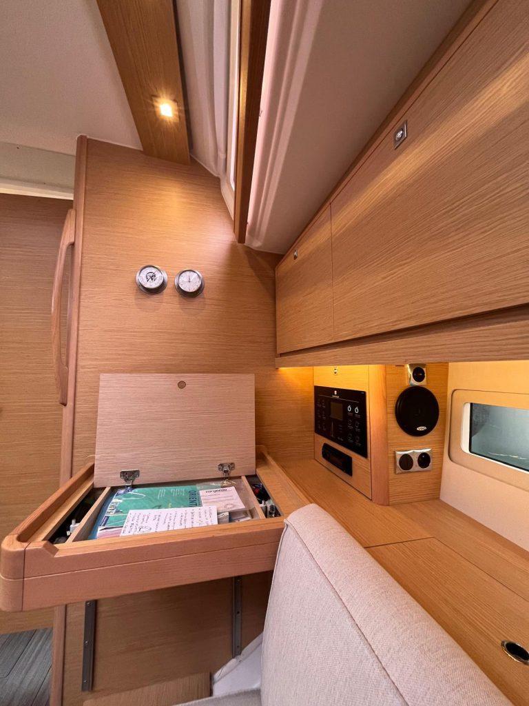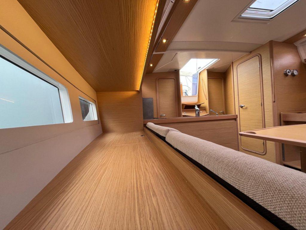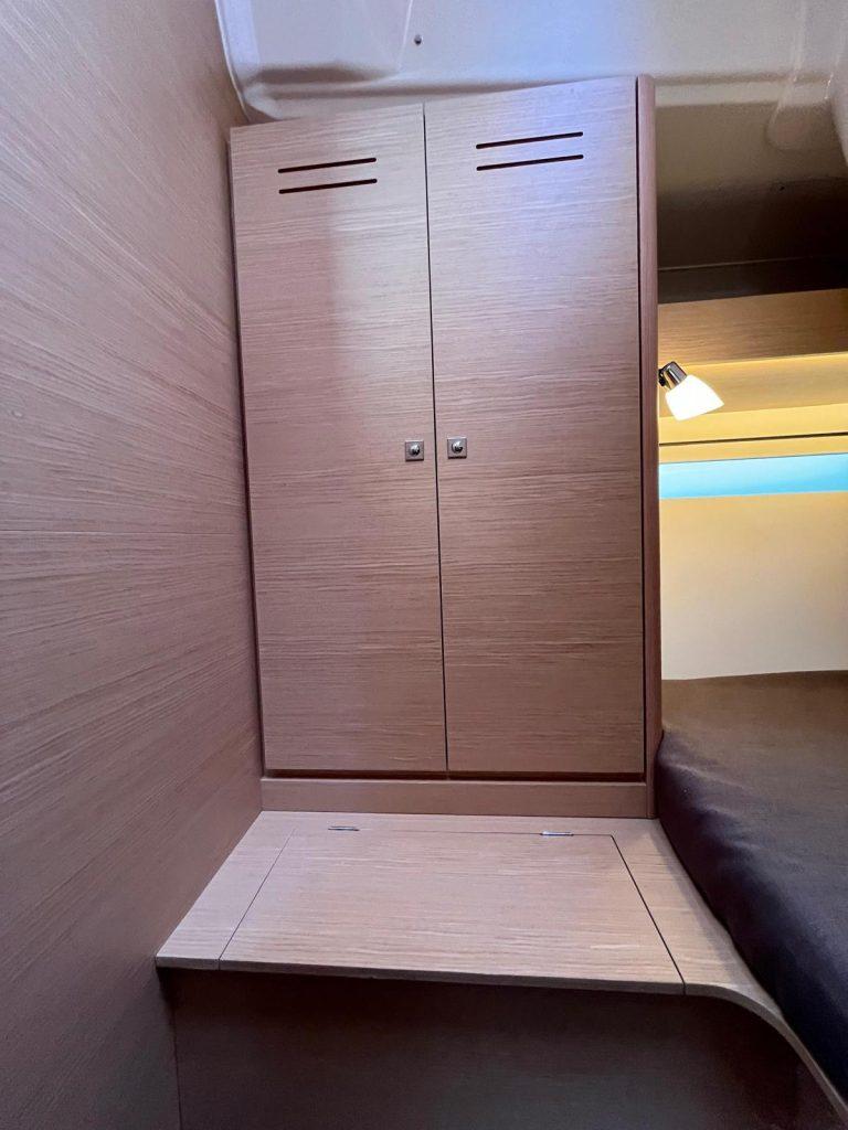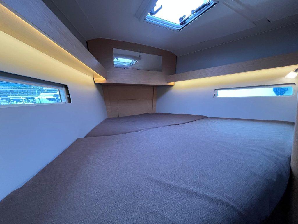 Imbarcazione in eccellenti condizioni, costruzione 2021, ma varata nel 2022. 3 cabine, 2 bagni di cui uno con wc elettrico, interni in rovere chiaro, dinette trasformabile, piano cucina in Corian, cantinetta sotto paiolo, oblo’ supplementari nelle cabine di poppa.